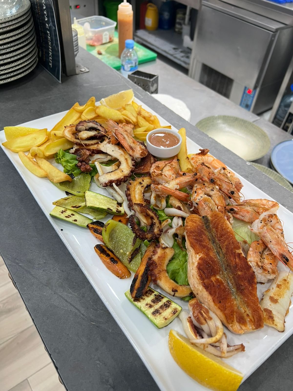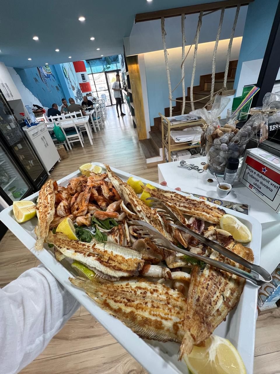 Peshku dhe produktet detare të marra çdo ditë nga tregu lokal.